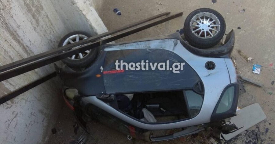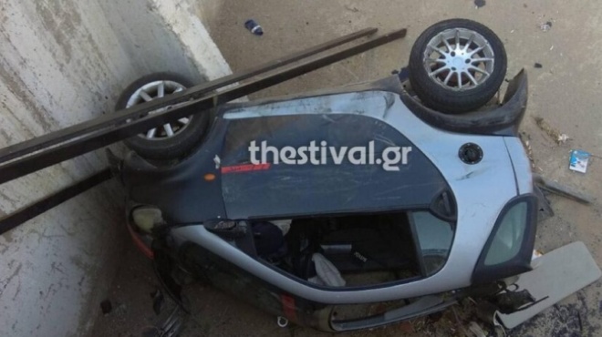 Προκειμένου να διαφύγουν, προσέκρουσαν σε αστυνομικό όχημα και έχασαν από τη σύγκρουση τον έλεγχο του αυτοκινήτου, το οποίο έπεσε σε υπαίθριο πάρκινγκ από ύψος 2,5 μέτρων, στη Σταυρούπολη, περιοχή της Θεσσαλονίκης.