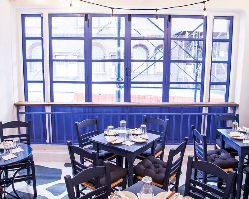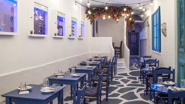 Ο στόχος του ελληνικού εστιατορίου είναι να φέρει τις διακοπές της Ελλάδας στο κέντρο της Νέας Υόρκης. Οι καρέκλες φέρουν μπλε χρώμα. Τα τραπεζάκια είναι βαμμένα στο χρώμα του τραπεζιού, ενώ από το ταβάνι κρέμονται μικρά φώτα, τα οποία μπορεί να βρει κανείς σε ταβέρνες από ελληνικά νησιά.