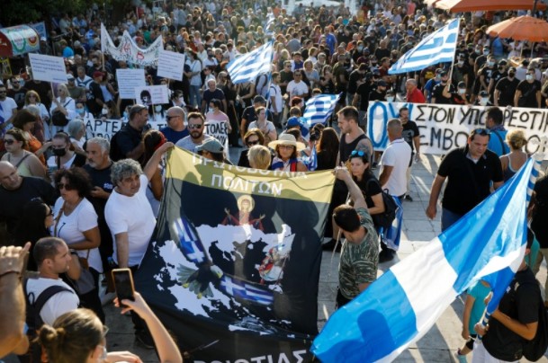 Οι αντιεμβολιαστές πραγματοποιούσαν από νωρίς το απόγευμα συγκέντρωση στην πλατεία Συντάγματος αλλά και στον Λευκό Πύργο στη Θεσσαλονίκη. Οι συγκεντρωμένοι διαδηλώνουν εναντίον του εμβολίου κατά του κορωνοϊού, των μέτρων της κυβέρνησης και του υποχρεωτικού εμβολιασμού.