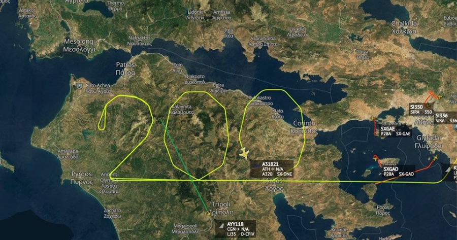 Η πορεία που κατέγραψε το αεροπλάνο της Aegean