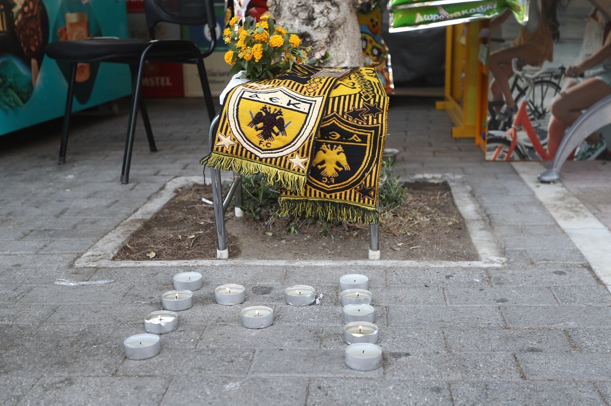 Ο 29χρονος Μιχάλης έχασε τη ζωή του χθες, Δευτέρα, το βράδυ, στη Νέα Φιλαδέλφεια, από οπαδούς της Ντίναμο Ζάγκρεμπ και οι φίλαθλοι της ΑΕΚ θέλησαν να τιμήσουν τη μνήμη του, στο σημείο που μεταφέρθηκε σοβαρότατα τραυματισμένος, περιμένοντας το ασθενοφόρο, πριν υποκύψει στα τραύματά του.
