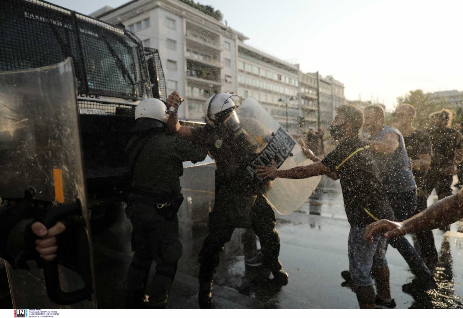 Η ένταση δεν άργησε, με αστυνομικές δυνάμεις να επεμβαίνουν. Έγιναν ρίψεις νερού με τις «Αύρες» της Ελληνικής Αστυνομίας, ενώ χρησιμοποιήθηκαν και δακρυγόνα ώστε να απομακρυνθούν οι αντιεμβολιαστές από το μνημείο του Αγνώστου Στρατιώτη.