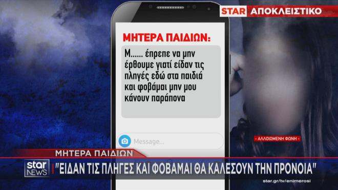 «Μ… έπρεπε να μην έρθουμε γιατί είδαν τις πληγές εδώ στα παιδιά και φοβάμαι μη μου κάνουν παράπονα και καλέσουν πρόνοιες και τέτοια, έπρεπε να μην τα φέρουμε τα παιδιά. Εγώ φοβάμαι τέτοια πράγματα δεν έχω εμπιστοσύνη σε κανέναν».