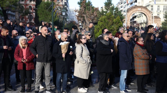 Κοσμοσυρροή στο λαϊκό προσκύνημα του Βασίλη Καρρά, στο προαύλιο του Ιερού Ναού Αγίας Σοφίας στη Θεσσαλονίκη.