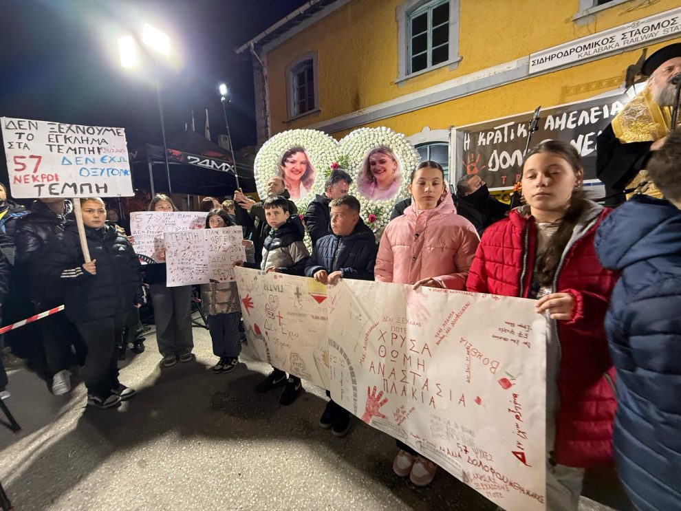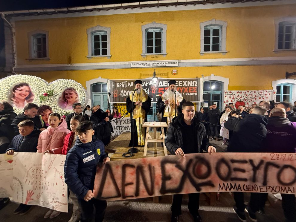 Όλη η Καλαμπάκα προσήλθε το βράδυ της Παρασκευής στον σιδηροδρομικό σταθμό της πόλης, εκεί απ’ όπου ξεκίνησαν πριν 2 χρόνια τέτοια μέρα το ταξίδι τους χωρίς επιστροφή η Χρύσα, η Θώμη και η Αναστασία Πλακιά.