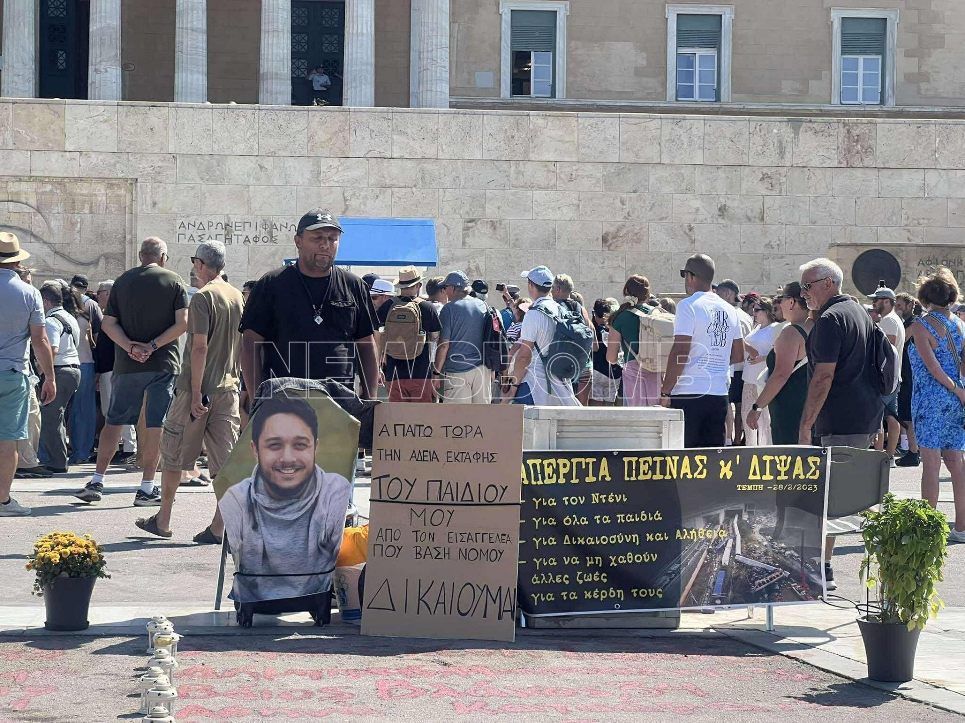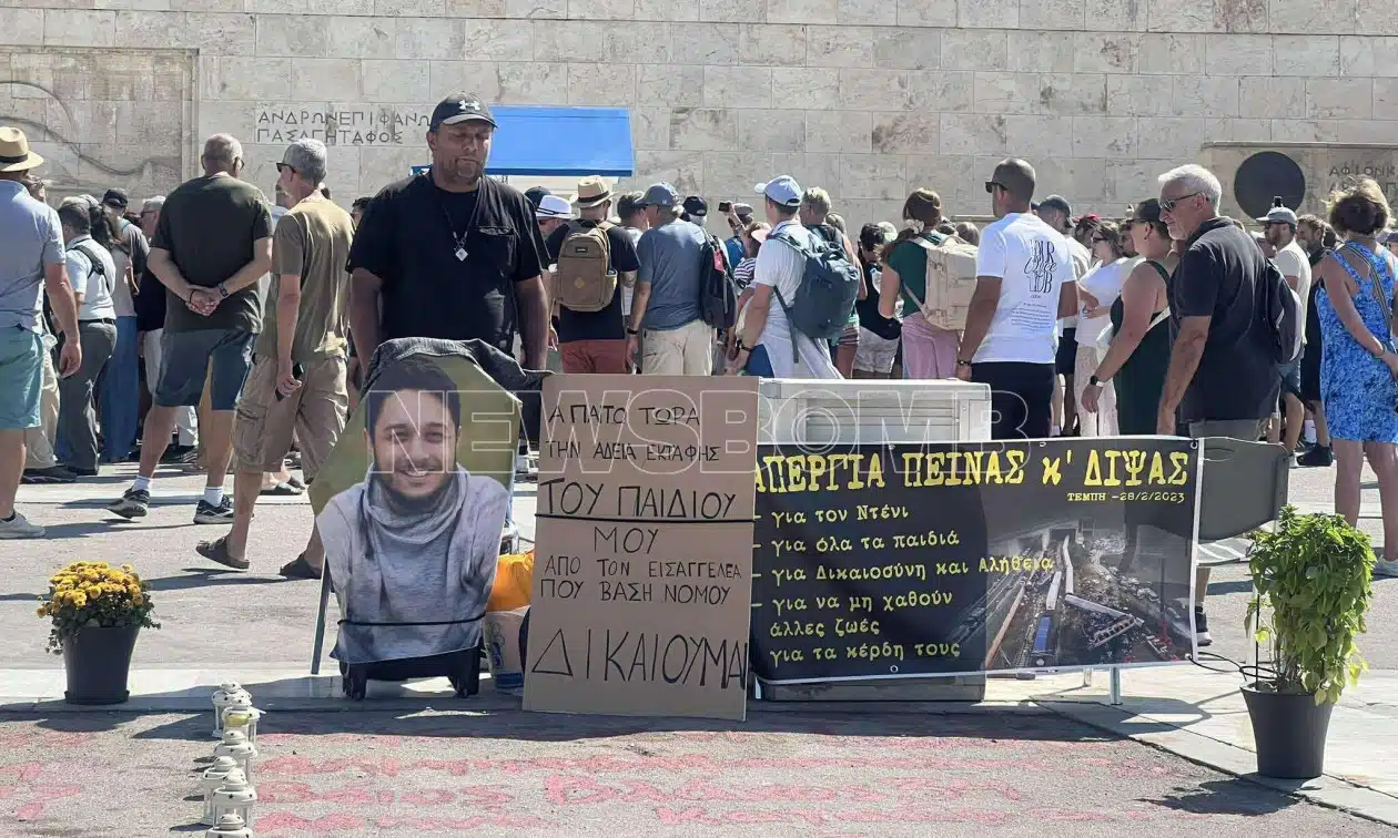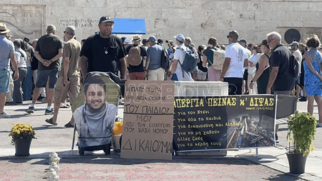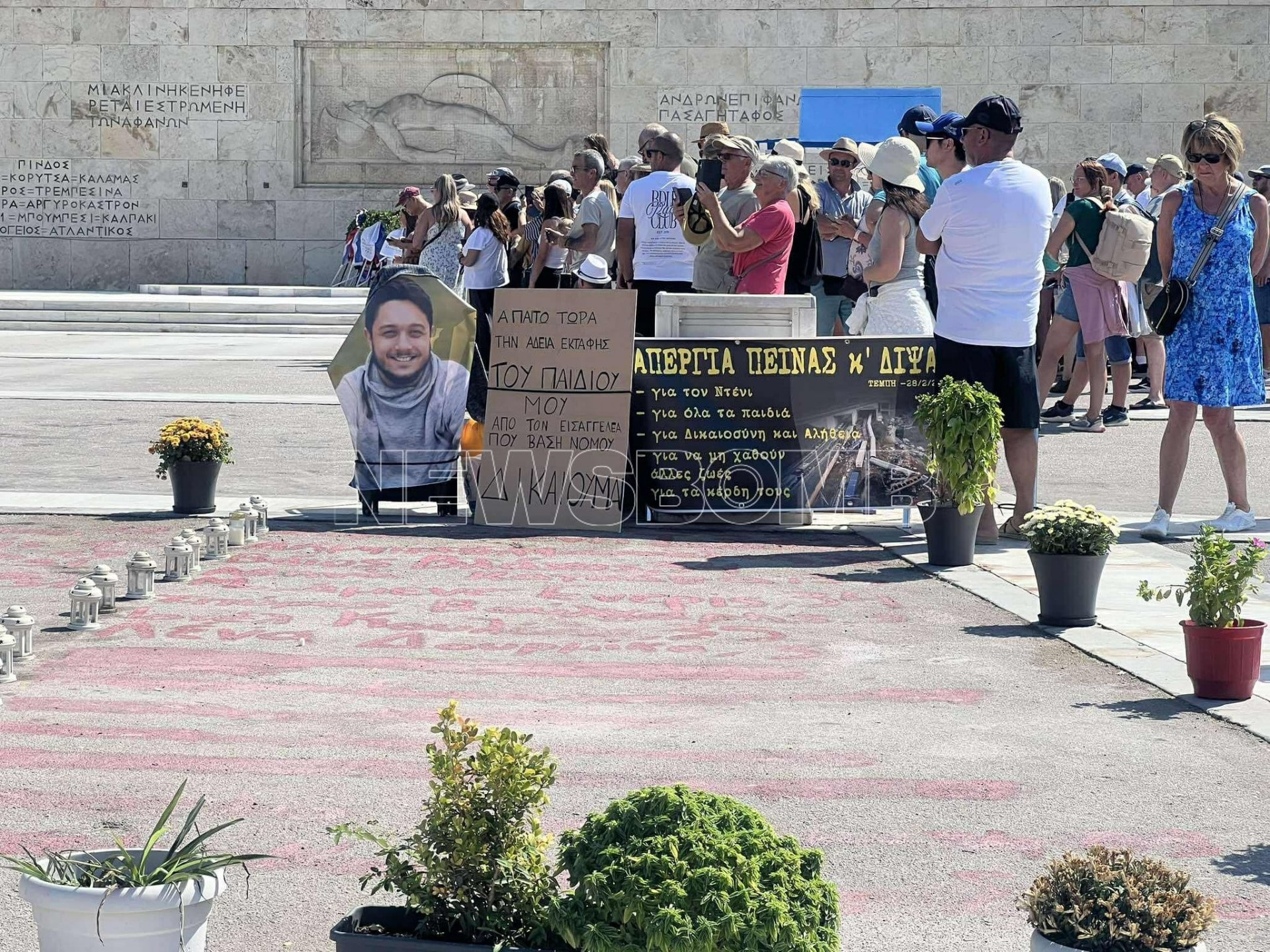Από το πρωί της Δευτέρας παραμένει στο σημείο όπου είναι χαραγμένο το όνομα του γιου του, στο αυτοσχέδιο μνημείο που έχει στηθεί μπροστά από το Μνημείο του Άγνωστου Στρατιώτη, στη Βουλή και δηλώνει πως «δεν πάει άλλο».
