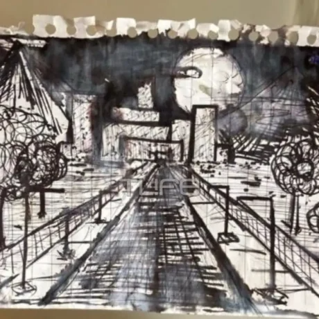 Όπως αναφέρει αποκλειστικά στο TLIFE ο πατέρας του Άγγελου, το σκίτσο αυτό ο γιος του το έκανε μέσα σε 20 λεπτά, σε καφέ που καθόταν πριν πάει στην δουλειά του και όπως μπορεί να παρατηρήσει κανείς, ο 23χρονος έχει σχεδιάσει ένα τούνελ, ράγες τρένου που χάνονται στο σκοτάδι, έναν ουρανό γεμάτο μαυρίλα και καπνούς, χωράφια απλωμένα δεξιά και αριστερά και στο κέντρο μια μορφή να περνά μπροστά από το φεγγάρι, σαν μια σκιά που βαδίζει προς το άγνωστο.