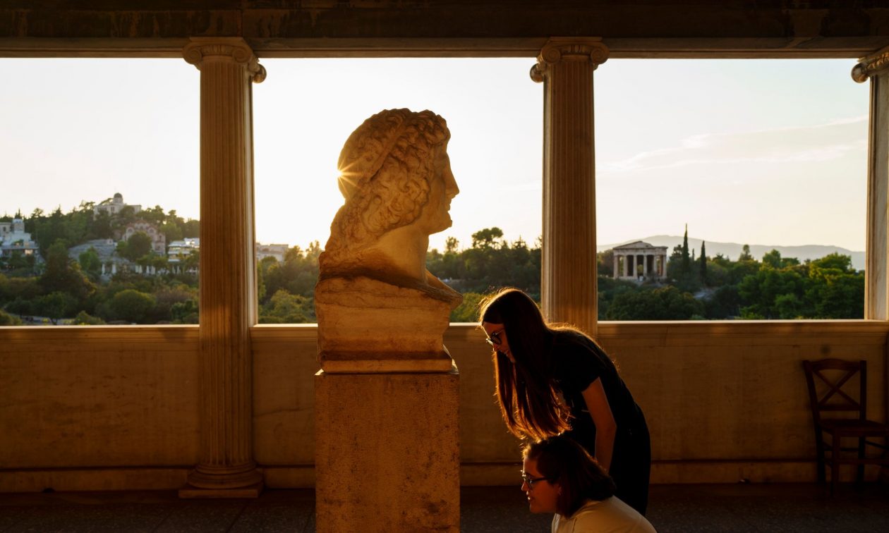 Το παλάτι των Αιγών, που χτίστηκε πριν από 2.300 χρόνια κατά τη διάρκεια της βασιλείας του πατέρα του Μεγάλου Αλεξάνδρου, φαίνεται από ψηλά μετά την πλήρη επαναλειτουργία του στις αρχαίες Αιγές, περίπου 65 χιλιόμετρα νοτιοδυτικά της πόλης του λιμανιού της Θεσσαλονίκης, στη βόρεια Ελλάδα. Ήταν το μεγαλύτερο κτίριο της κλασικής Ελλάδας: Το παλάτι όπου ο Μέγας Αλέξανδρος ανακηρύχθηκε βασιλιάς πριν ξεκινήσει μια κατάκτηση που τον οδήγησε μέχρι το σημερινό Αφγανιστάν