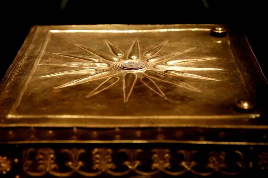 Ένα βαρύ, ολόχρυσο φέρετρο από τον πλούσιο, άπλυτο τάφο του Φιλίππου Β’ του Μακεδόνα, που περιείχε τα καμένα οστά του δολοφονημένου βασιλιά, εκτίθεται στο μουσείο της Βεργίνας. Ο Φίλιππος βασίλεψε από το 359 έως το 336 π.Χ. επεκτείνοντας το βασίλειό του ώστε να συμπεριλάβει τις μονίμως διαπληκτιζόμενες πόλεις-κράτη της Ελλάδας. Ο γιος και διάδοχός του, ο Μέγας Αλέξανδρος, ο οποίος διακρίθηκε στις ελληνικές εκστρατείες του Φιλίππου, επέκτεινε τη μακεδονική κυριαρχία επικεφαλής ενός ελληνικού στρατού, φτάνοντας μέχρι τα σύνορα της Ινδίας