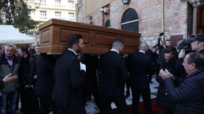 Σήμερα, σε έντονα φορτισμένο συγκινησιακό κλίμα τελέστηκε στον Ιερό Ναό της Του Θεού Σοφίας στη Θεσσαλονίκη η εξόδιος ακολουθία του λαϊκού ερμηνευτή, η οποία ξεκίνησε στις 12:35.