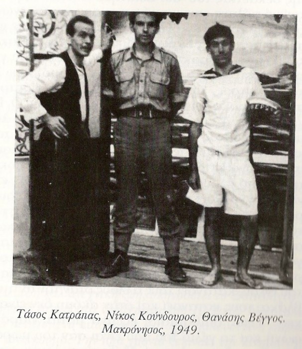 «Που λέτε, μη δω σκόνη και στραβό πράγμα», συνεχίζει ο Θ. Βέγγος ισιώνοντας την άκρη ενός σεμέν. «Η σκόνη στη Μακρόνησο ήταν άλλο πράμα. Από τα μαγειρεία, για να πας στο αντίσκηνο, ο αέρας έπαιρνε τα φασόλια από την κατσαρόλα και έμενε μόνο η σκόνη». Πώς ήταν η καθημερινότητα στη Μακρόνησο; «Έπρεπε να σας δείξω μια φωτογραφία κάτω από την οποία ο Κούνδουρος έγραψε: “Το παρόν ονομάζεται φαντάρος”». Τι έπρεπε να διαθέτετε για να βγάλετε πέρα τη ζωή σας εκεί; «Αντοχή και ψυχραιμία. Ήταν πέντε τάγματα. Ήμουν στο δεύτερο. Πέρασαν πολλοί επώνυμοι άνθρωποι. Κάθε μέρα 11 με 12 πηγαίναμε στο βουνό της Μακρονήσου και μαζεύαμε αφάνες για τη φωτιά. Έπρεπε να μαζεύουμε τέσσερις με πέντε».