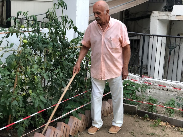 Ο «κηπουρός» της παρέας είναι ο Παναγιώτης Θεοδοσιάδης. «Εγώ ανέλαβα τον κήπο από την ημέρα που ξεκινήσαμε. Έχουμε αγγουράκια, ντομάτες, πιπεριές καυτερές και την ημέρα που γιόρταζε ο Άγιος Παντελεήμων, η εκκλησία μας, μαζευτήκαμε εδώ και κεραστήκαμε. Έρχομαι κάθε πρωί, μεσημέρι και απόγευμα για να προσέχω τον κήπο, καθώς θέλουν φροντίδα τα φυτά», εκμυστηρεύτηκε.