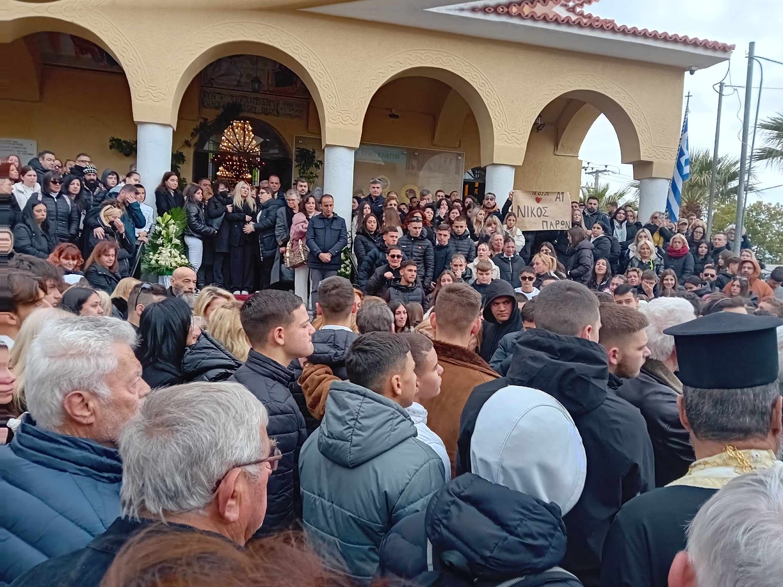 Και την ώρα που κίνησε η σορός του για το στερνό ταξίδι, οι αγαπημένες του μουσικές έγιναν ένα με τον πένθιμο ήχο της καμπάνας, ένα με το κλάμα του κόσμου, ένα με το χειροκρότημα για τον Νικόλα που έφυγε νωρίς.