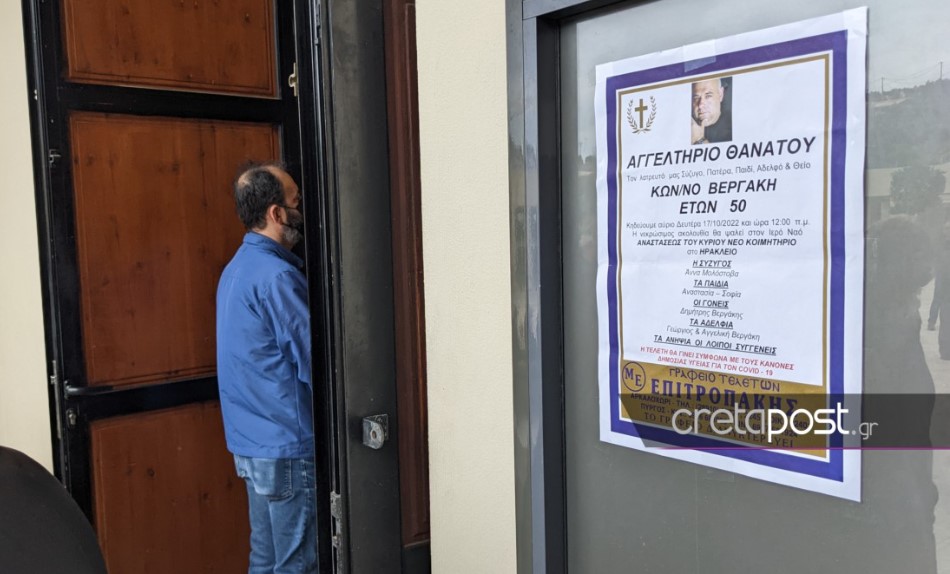 Η εξόδιος ακολουθία έγινε στον Ιερό Ναό Αναστάσεως του Κυρίου στο νέο κοιμητήριο Ηρακλείου, σύμφωνα με την ιστοσελίδα, cretapost.gr.