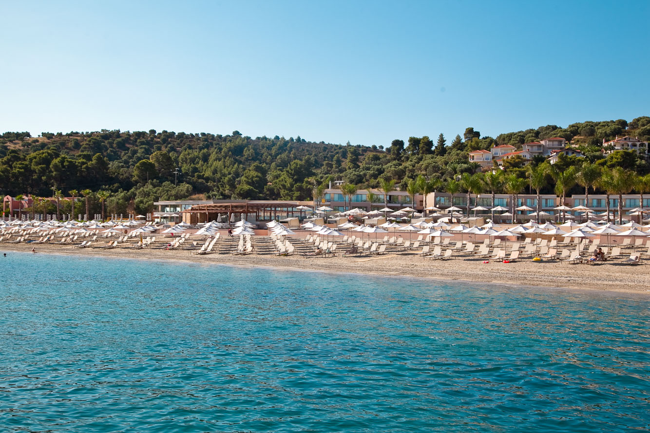 Το Miraggio Thermal Spa Resort αναπτύσσεται αμφιθεατρικά μπροστά σε μια ακτή μήκους 500 μέτρων. Στην άκρη του πρώτου ποδιού της Χαλκιδικής στην τοποθεσία Κάνιστρο κοντά στο Παλιούρι.