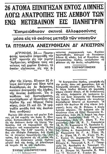 Το πολύνεκρο ναυάγιο στη Λίμνη Αμβρακία πριν από 60 χρόνια βύθισε στο πένθος την Αιτωλοακαρνανία και ολόκληρη την Ελλάδα.