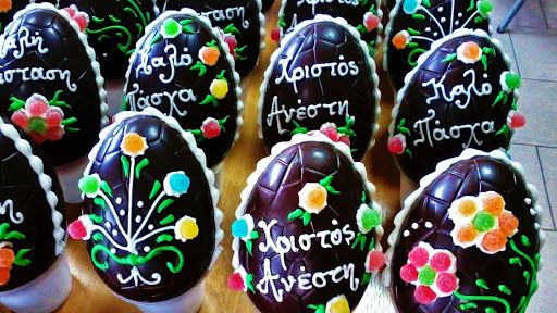 Τα Ζαχαροπλαστεία γέμιζαν με πανέμορφα λαχταριστά σοκολατένια αυγουλάκια. Αλλά μικρά και αλλά μεγάλα. Η διακόσμηση τους ήταν από χρωματιστή ζάχαρη συνήθως λουλουδάκια.