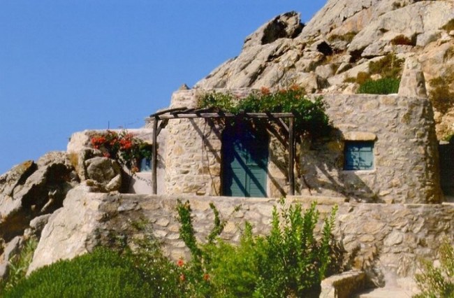 Ένα παραδοσιακό πέτρινο σπίτι, χτισμένο στις βραχώδεις πλαγιές της Μυκόνου. Από μακριά δύσκολα το ξεχωρίζεις. Από κοντά μοιάζει με ένα πανέμορφο γλυπτό!