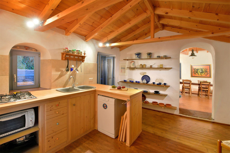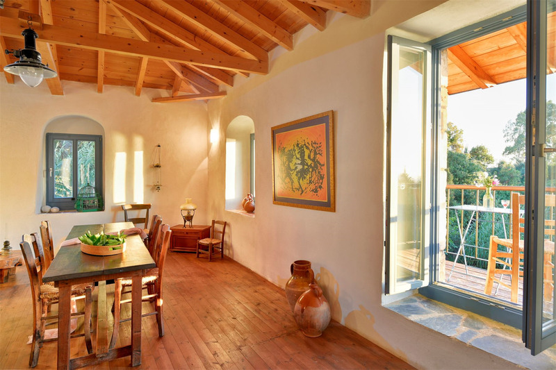 Όλοι οι χώροι είναι επενδυμένοι με ξύλινα δάπεδα και δοκάρια στις οροφές. Αντίκες, πολυθρόνες και πανέμορφοι καναπέδες διακοσμούν όλα τα μέρη της οικίας. Από εκεί και πέρα, διαθέτει εσωτερική αυλή, μικρό παραδοσιακό μπαλκόνι που βλέπει στο Αιγαίο, καθώς και μικρή βεράντα-καθιστικό στο δεύτερο επίπεδο.