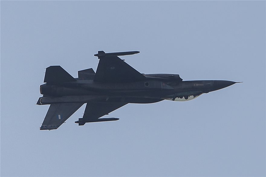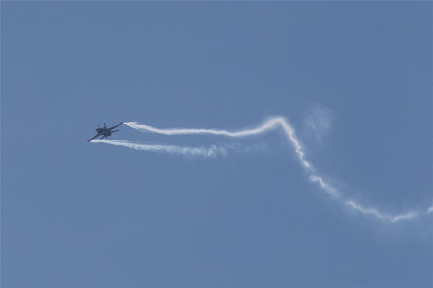 Με τις εκπληκτικές ασκήσεις ακριβείας και του επικίνδυνους ελιγμούς που επιχείρησε πάνω από το χώρο της παρέλασης, ο πιλότος του μαχητικού F-16 κέρδισε τις εντυπώσεις.