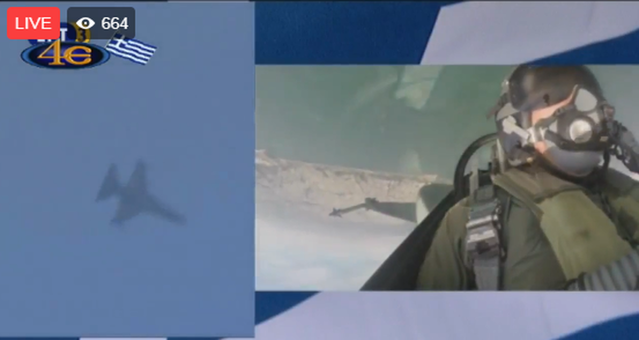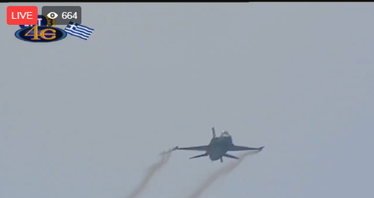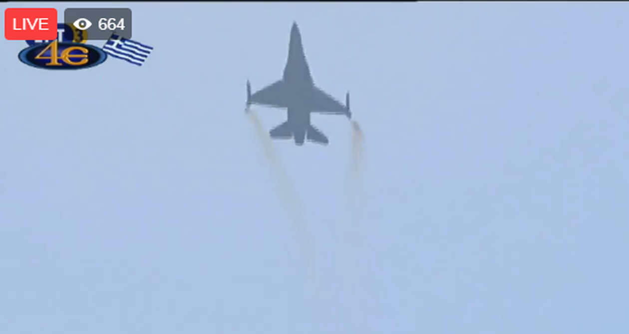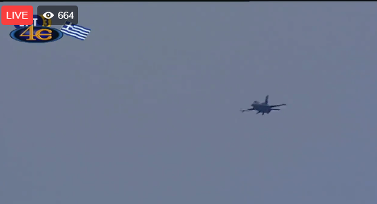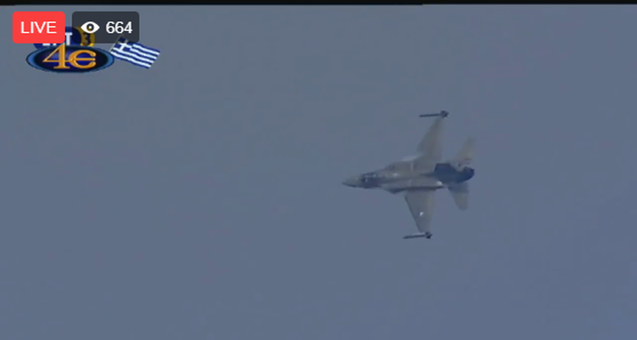 Με την εντυπωσιακή επίδειξη πολεμικού αεροσκάφους F-16 έκλεισε η στρατιωτική παρέλαση στη Θεσσαλονίκη, για την Εθνική Επέτειο της 28ης Οκτωβρίου. Ο επισμηναγός έστειλε το δικό του μήνυμα μέσα από το πιλοτήριο: «Ετούτος ο λαός δε γονατίζει παρά μονάχα μπροστά στους νεκρούς του».