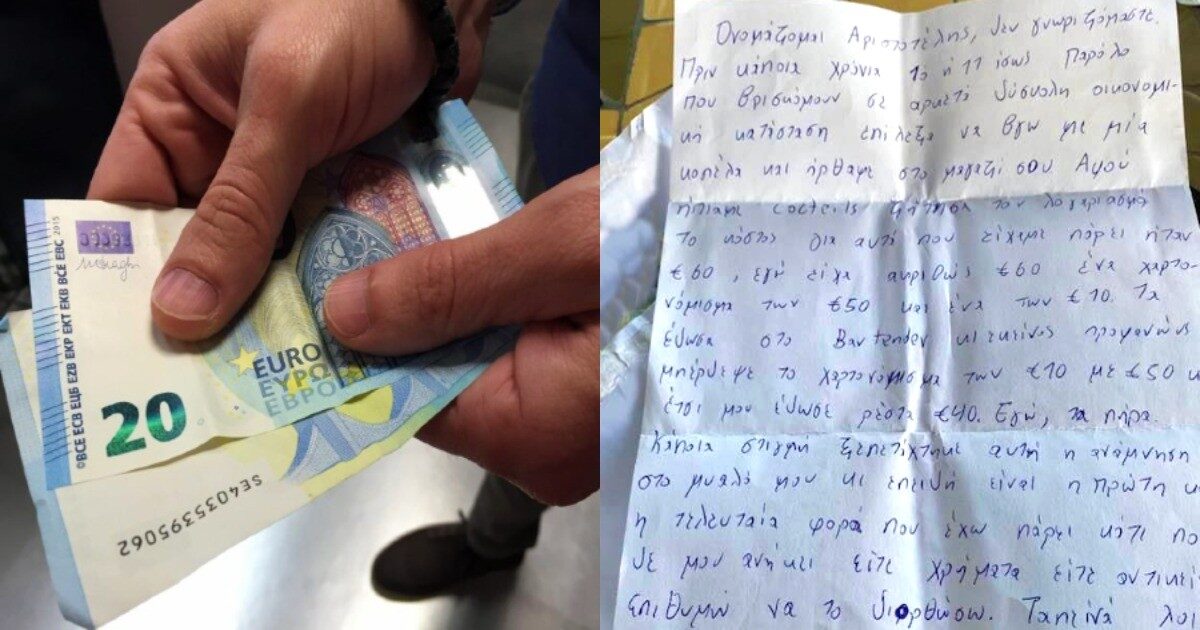 Κρητικός επέστρεψε 40 ευρώ σε μπάρμαν μετά από 11 χρόνια μαζί με ένα γράμμα