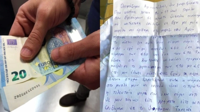 «Αυτό το γράμμα με 40€ ήρθε από ένα άνθρωπο που δεν γνωρίζω . Τον Αριστοτέλη . Ήρθε την στιγμή που είχα χάσει την πίστη μου στους ανθρώπους … Αριστοτέλη σε Ευχαριστώ όχι για τα λεφτά … σε Ευχαριστώ γιατί μου ξανά έδωσες την ελπίδα….».