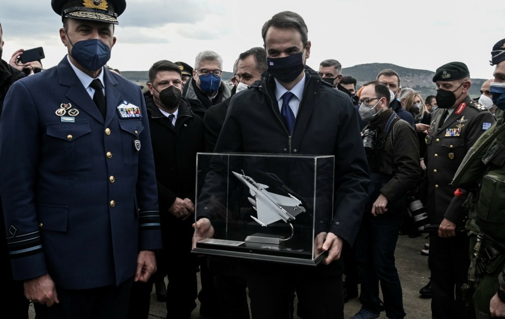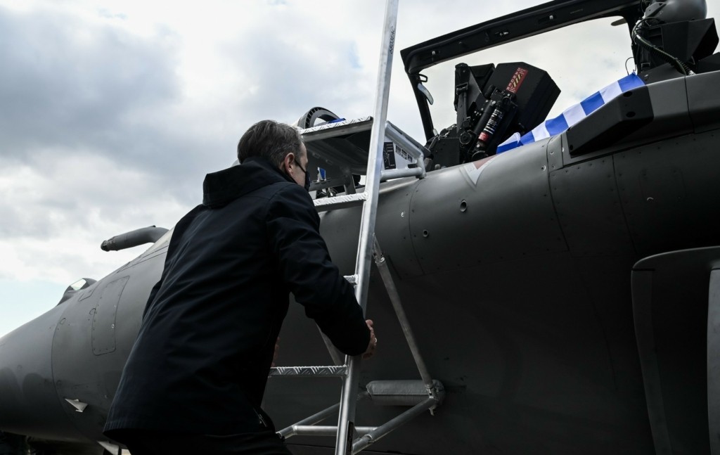 O Κυριάκος Μητσοτάκης συνομίλησε με τα πληρώματα των αεροσκαφών και τους ευχήθηκε υγεία και δύναμη στο έργο τους για την πατρίδα.