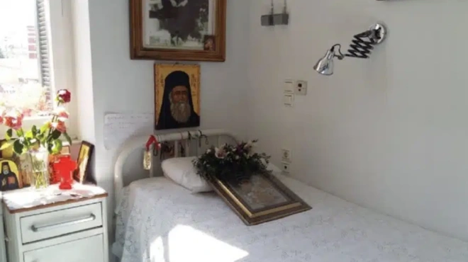 Γι” αυτό ακριβώς προσεύχεται κάθε πρωί, κλεισμένη μόνη της στο δωμάτιο με τον αριθμό 2, όπου πριν από σχεδόν 94 χρόνια εκοιμήθη ο άγιος Νεκτάριος.