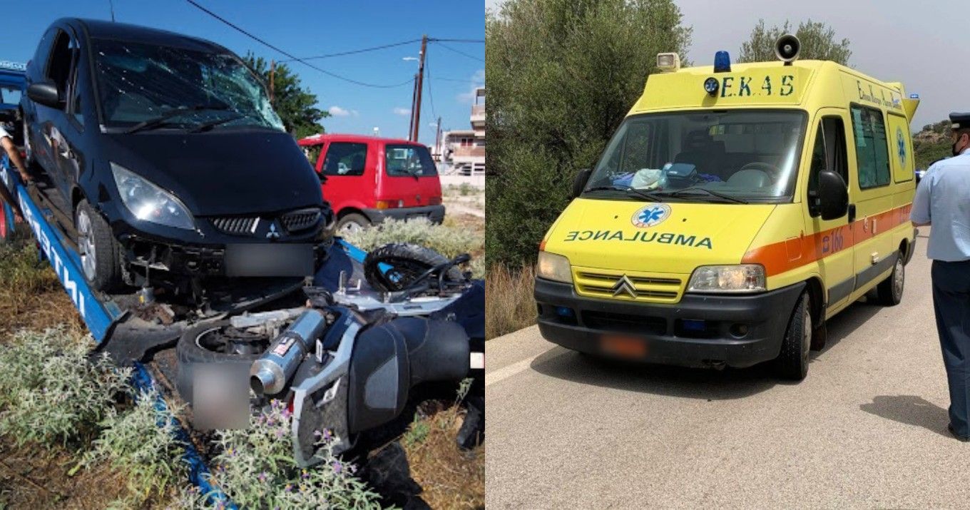 Από τη σφοδρή σύγκρουση που έγινε το μεσημέρι της Κυριακής τραυματίστηκε σοβαρά ο οδηγός της μοτοσικλέτας και δύο ακόμα άτομα που επέβαιναν στο ΙΧ.