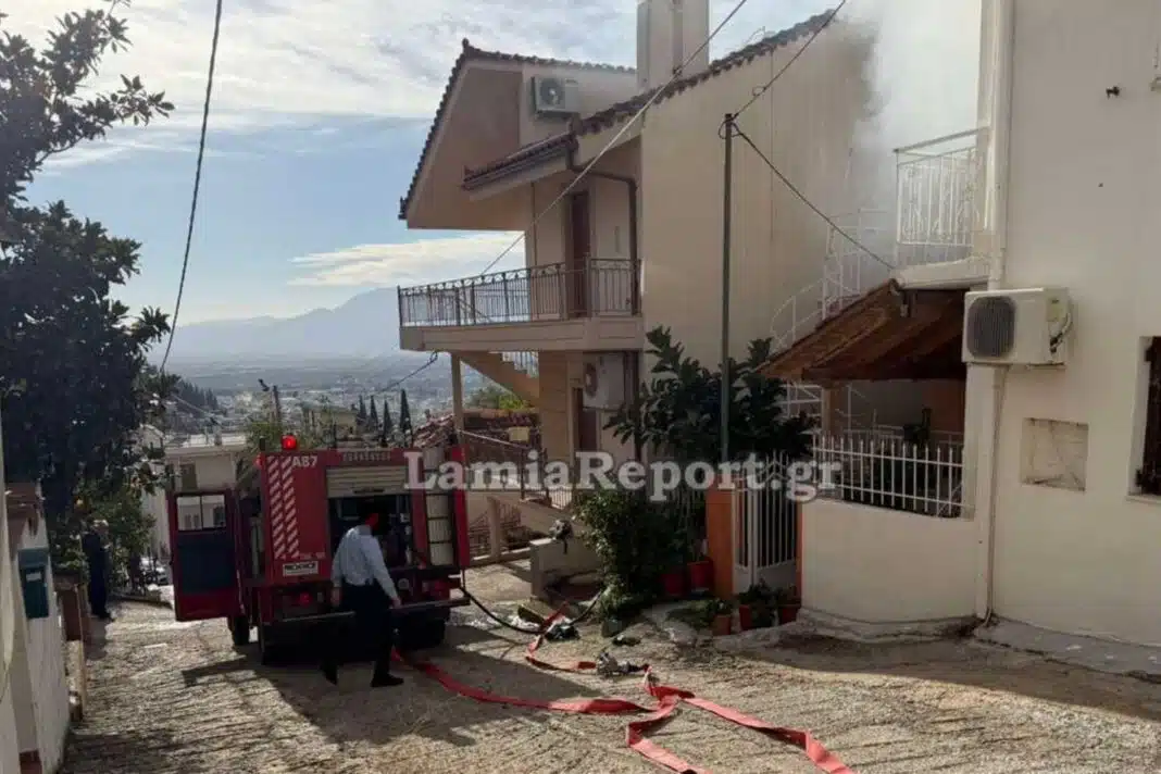 Η φωτιά εκδηλώθηκε γύρω στις 09:00 το πρωί, σε μονοκατοικία στην οδό Παρνασσού στη Λαμία, κάτω από άγνωστο λόγο.