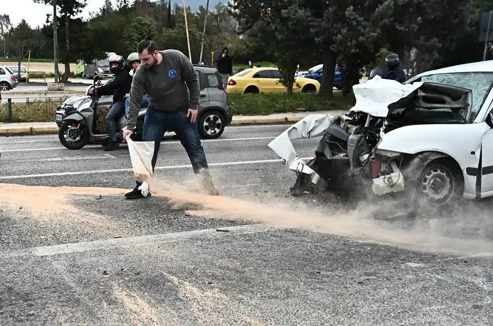 Σύμφωνα με την ΕΛΑΣ, το τροχαίο σημειώθηκε περίπου στις 4 το απόγευμα, στο ρεύμα προς Μεσογείων, και σε αυτό ενεπλάκησαν 3 ΙΧ οχήματα και ένα ταξί.