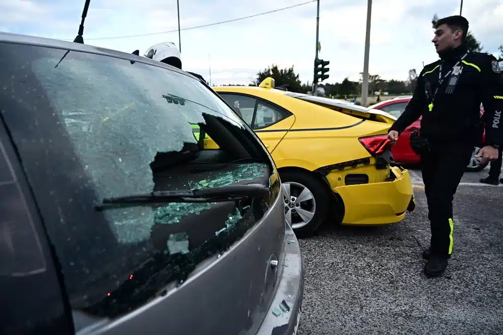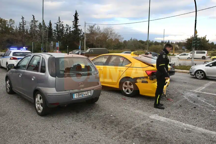 Όπως αναφέρει ρεπορτάζ της ΕΡΤ, το λευκό όχημα που οδηγούσε ηλικιωμένος φαίνεται πως έπεσε στο προπορευόμενο ταξί και αυτό με την σειρά του στο επόμενο.