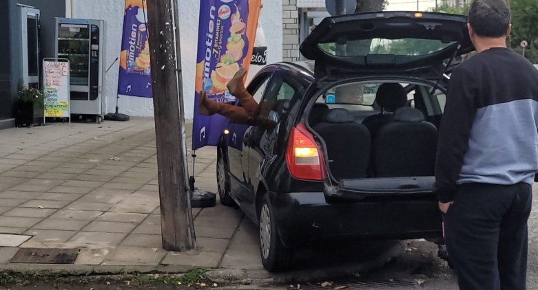 Στη συνέχεια πήρε το αυτοκίνητο και προσπαθώντας να σταθμεύσει το έριξε πάνω σε ένα δέντρο, ενώ ταυτόχρονα πηδούσε από το παράθυρο.