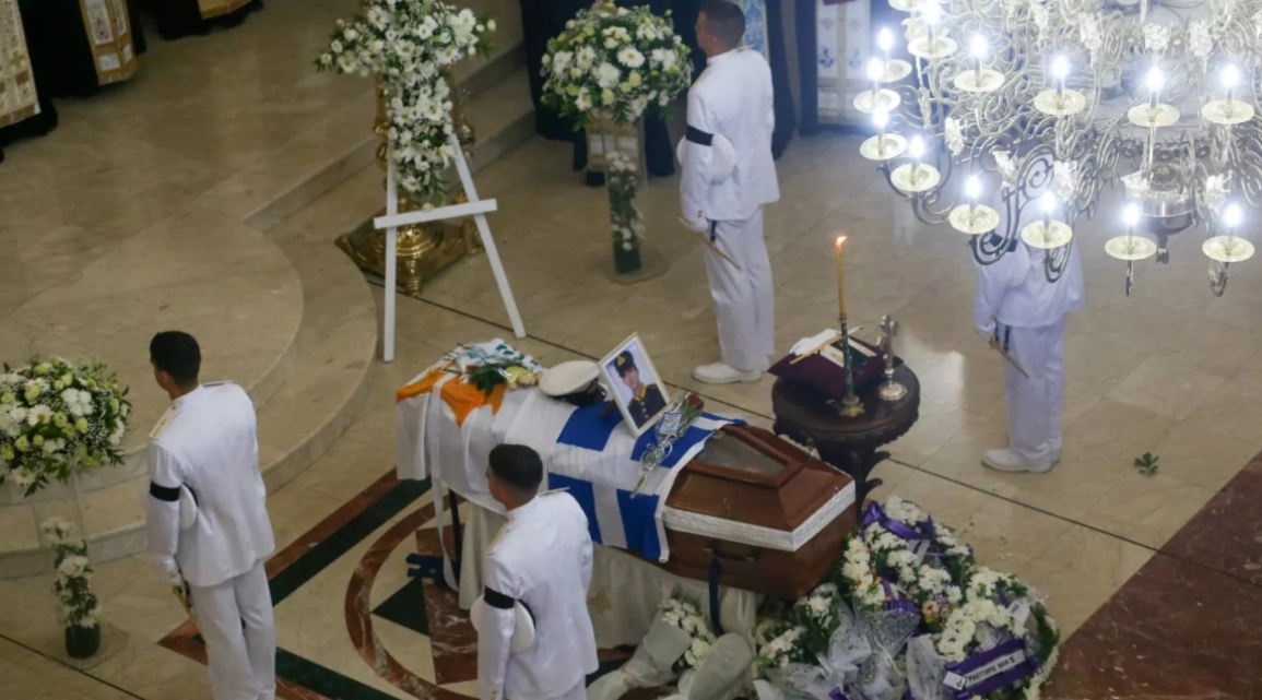 Στρατιωτικό άγημα απέδωσε τιμές και το φέρετρο σκεπασμένο με την ελληνική και τη κυπριακή σημαία οδηγήθηκε στο κοιμητήριο στη τελευταία κατοικία του άτυχου Εύελπι.