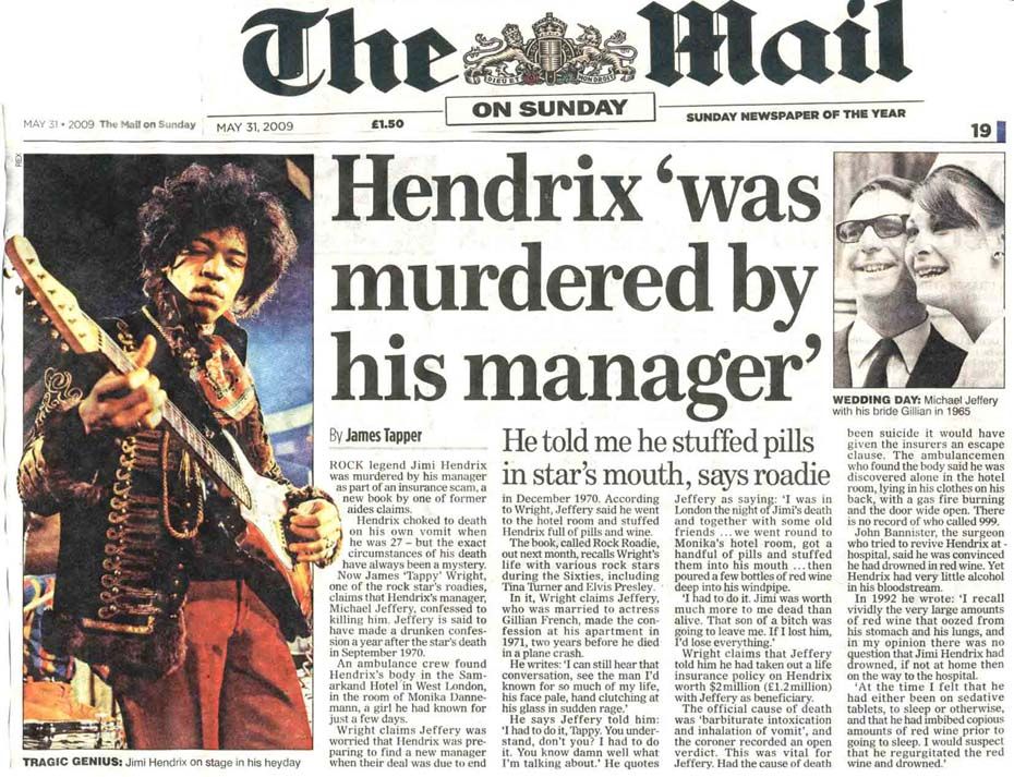 Από την άλλη υπάρχουν αναφορές για τον Μάικ Τζέφερι πως μπορεί εκείνος να σκότωσε τον Τζίμι Χέντριξ. Ο λόγος δεν ήταν άλλος από τα πολλά εκατομμύρια που θα λάμβανε, λόγω της δικαιοδοσίας που είχε στην ασφάλεια ζωής του τραγουδιστή. Η τελευταία και επικρατέστερη θεωρία είναι να αποτέλεσε θύμα του FBI. Ο λόγος ήταν η απαλλαγή της χώρας από χαρακτήρες, με επιρροή στις νεότερες γενιές.