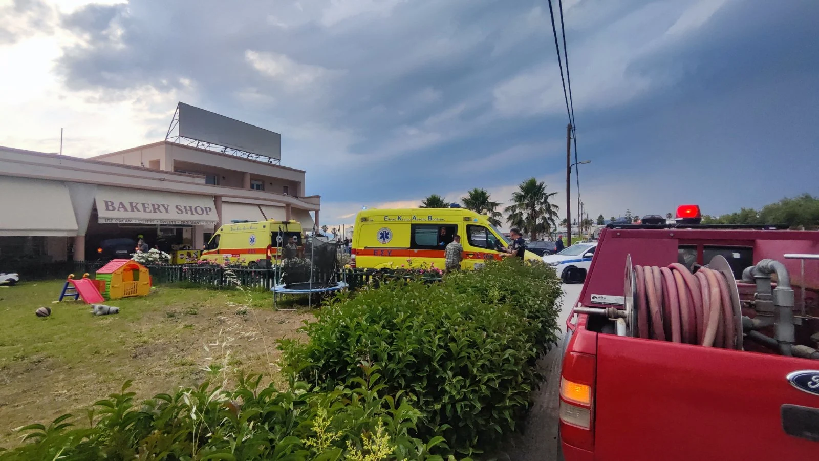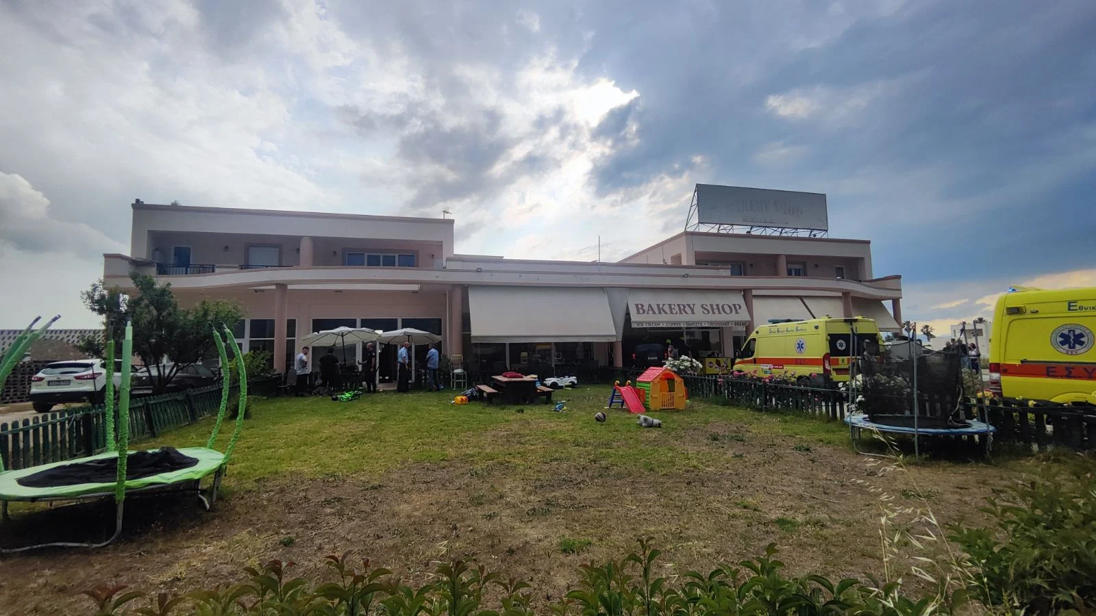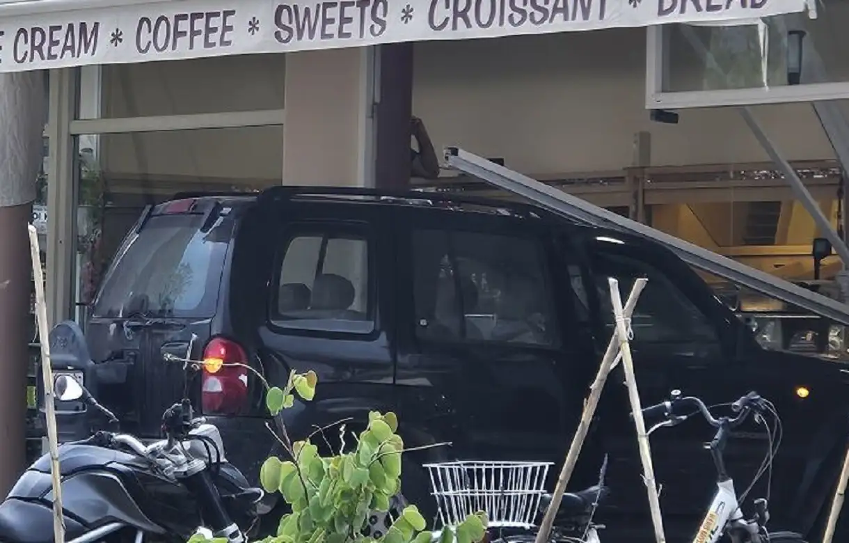 Όπως αναφέρει το vimatisko οι πελάτες καθόταν έξω στα τραπεζάκια της επιχείρησης και το αμάξι τους παρέσυρε μέσα στο μαγαζί, σπάζοντας τις τζαμαρίες.