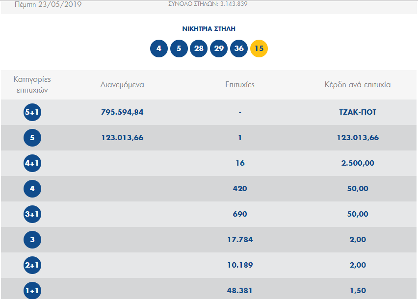 5: Η επιτυχία ήταν 1, με τα κέρδη της να ανέρχονται στα 123.013,66 ευρώ.