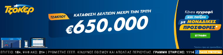 Τζόκερ: Νέο τζακ ποτ σημειώθηκε στην τελευταία κλήρωση Τζόκερ, η οποία διεξήχθη την Κυριακή 11 Απριλίου 2021. Αυτό είχε ως αποτέλεσμα, το συνολικό ποσό που θα μοιραστούν οι νικητές της πρώτης κατηγορίας στην επόμενη κλήρωση (σ.σ. Τρίτη 13 Απριλίου 2021) να φτάσει τις 650.000 ευρώ.