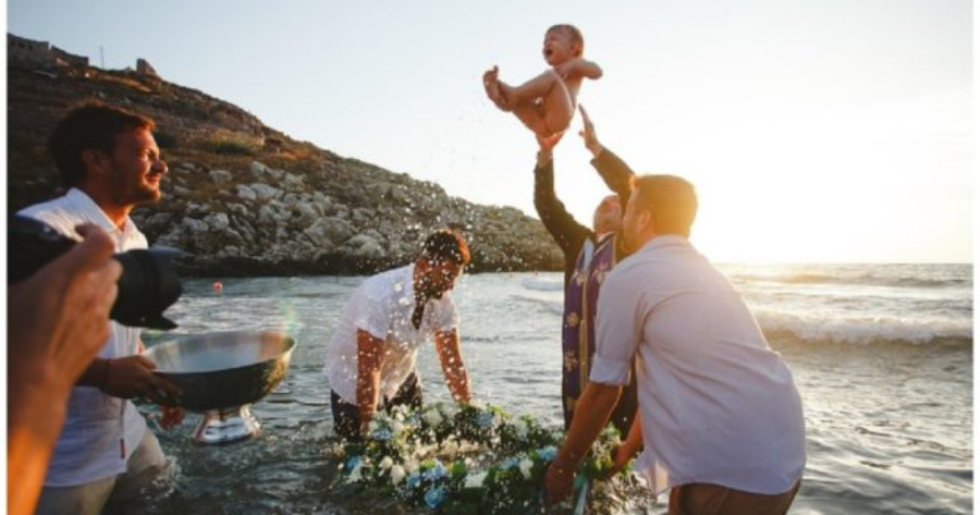 Βάπτιση : Επιτρέπεται να τελεστεί στη θάλασσα; Δεν είναι λίγα τα ζευγάρια που επιθυμούν την τέλεση της βάπτισης του νέου μέλους της οικογένειάς τους, όχι σε κολυμβήθρα, αλλά στη θάλασσα.