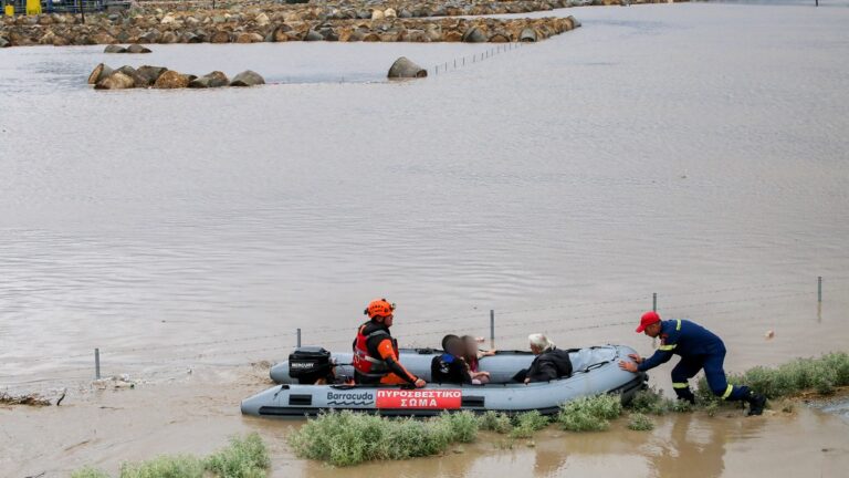 “Η γυναίκα με τον άνδρα βρίσκονται σε μία ευθεία στα 250 μέτρα και δεν έχω ούτε μηχάνημα ούτε με τα πόδια μπορώ να προσεγγίσω. Υπάρχουν οι τοπικές Αρχές εδώ αλλά για να πάρουμε τους ανθρώπους πρέπει να πάμε με βάρκα. Έχει αέρα και έχει ασθενή βροχή αυτή τη στιγμή. Από την Δευτέρα το πρωί ξεκίνησε και μετά επιδεινώθηκε. Δεν έχουμε ρεύμα έχει κοπεί από τις 12 η ώρα. Αυτή τη στιγμή βλέπουμε μία απέραντη θάλασσα να περνάει στις περιουσίες μας. αυτή τη στιγμή γκρεμίζονται πλινθόκτιστες κατασκευές”, περιέγραψε ο κ. Τάσος.