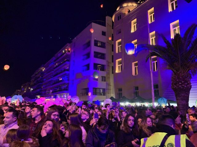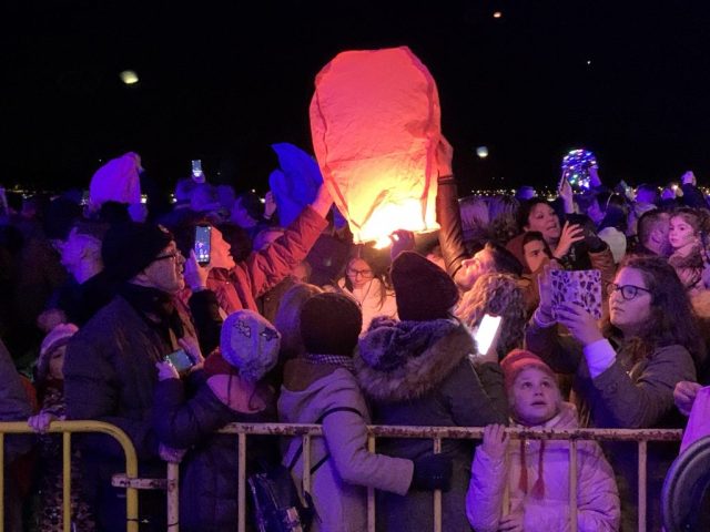 Τα χιλιάδες φαναράκια απελευθερώθηκαν αναμμένα στον ουρανό ταυτόχρονα και δημιούργησαν ένα εκπληκτικό αισθητικά αποτέλεσμα, ενώ παράλληλα «Ένα Φως – Μια Ευχή» ταξίδεψε από τους κατοίκους και τους επισκέπτες της πόλης, μεταφέροντας τις προσωπικές επιθυμίες του καθένα στο γιορτινό ουρανό.