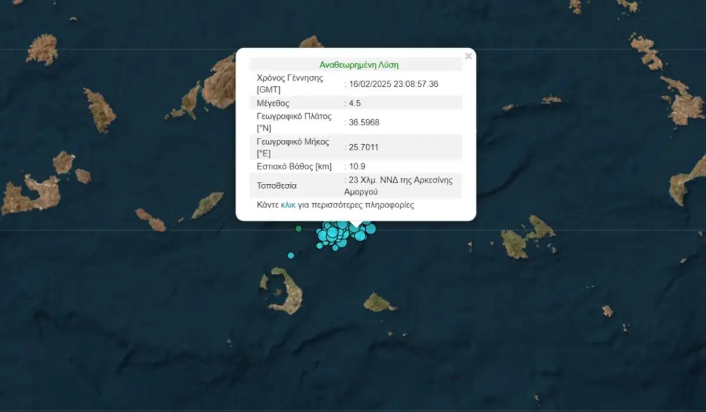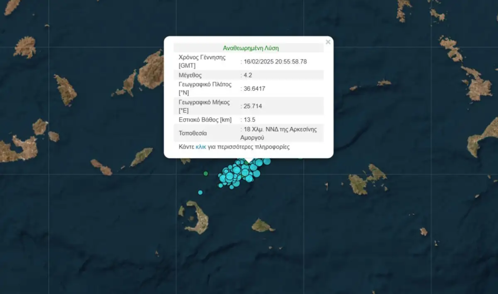Νέες σεισμικές δονήσεις σημειώθηκαν κατά τη διάρκεια της νύχτας (17.02.2025) στα νησιά των Κυκλάδων, με τις μεγαλύτερες δονήσεις να φτάνουν σε μέγεθος τα 4,2 και τα 4,5 Ρίχτερ.