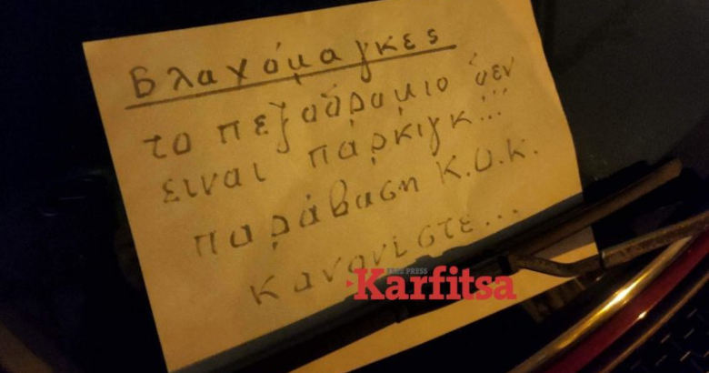 Σύμφωνα με το karfitsa.gr, ένας πολίτης της πόλης αποφάσισε να γράψει το δικό του μήνυμα προς τους ασυνείδητους οδηγούς, δίνοντας τους να καταλάβουν πως αυτό που έπραξαν είναι μεγάλο λάθος.