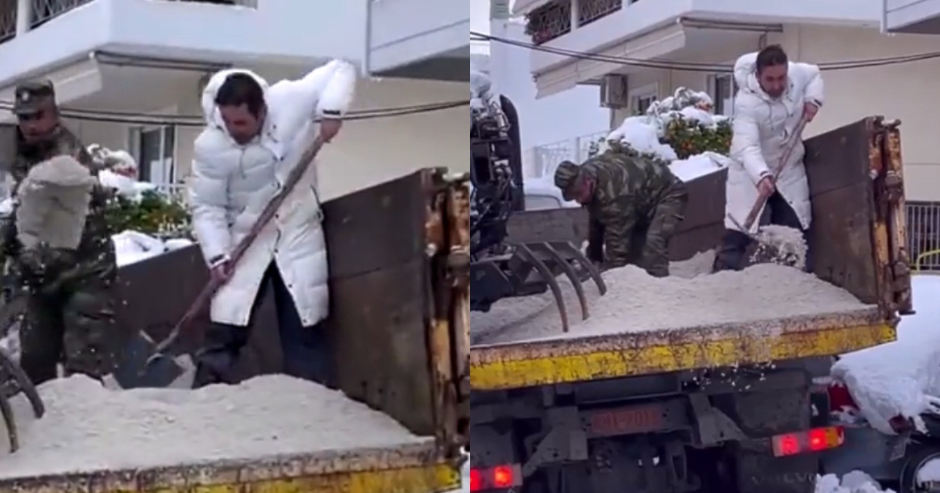Το σχετικό βίντεο αναρτήθηκε στο Τwitter, όπου ο δήμαρχος έχει πάρει το φτυάρι και από την καρότσα του φορτηγού που μεταφέρει αλάτι το ρίχνει πάνω στον πάγο.