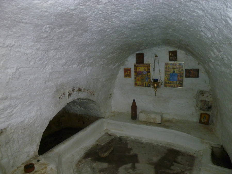 Κάτω από τη Ρώσικη εκκλησία υπήρχαν ρωμαϊκά λουτρά, που χρησιμοποιήθηκαν αργότερα ως υπόγειος χώρος –τα λέμε κατακόμβες, αλλά δεν είναι στην πραγματικότητα, δεν έχουν θάψει μέσα ανθρώπους, δεν αποτελούν υπόγειο νεκροταφείο. Στο υπόγειο της εκκλησίας μπορεί να δει κανείς υπολείμματα από τις κολώνες του ρωμαϊκού βαλανείου και αρχαίες κολώνες».