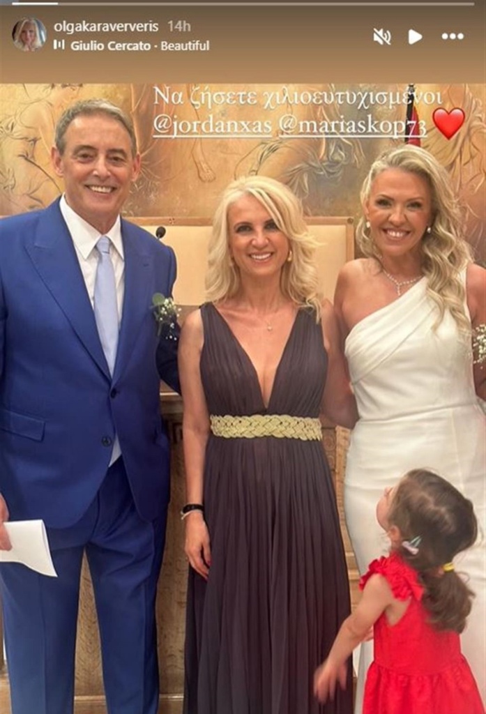 Την είδηση γνωστοποίησε η σχεδιάστρια μόδας, Όλγα Καραβερβέρη, η οποία έδωσε το “παρών” στο μυστήριο και φωτογραφήθηκε με τους νεόνυμφους, την οποία και ανάρτησε.