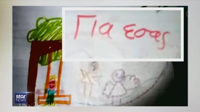 Συγκεκριμένα, σύμφωνα με όσα μετέδωσε χθες στο κεντρικό δελτίο ειδήσεων του Star, η Τασούλα Παπανικολάου στο «μικροσκόπιο» μπαίνουν τρεις ζωγραφιές της άτυχης 9χρονης. Όπως μεταφέρει το ρεπορτάζ η πρώτη ζωγραφιά που μπαίνει στην έρευνα περιέχει λίγα λόγια της 9χρονης για τη μητέρα της: «Στη μαμά που πετάει, χρόνια πολλά, σε ευχαριστώ για όλα».