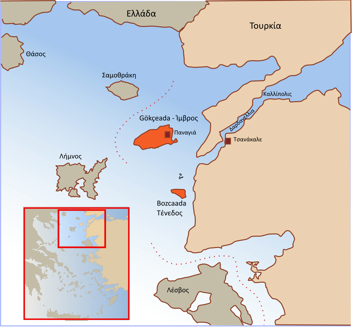 Με τη Συνθήκη της Λωζάνης -το 1923- η Ιμβρος -όπως και η μικρότερη Τένεδος- παραχωρήθηκε στην Τουρκία λόγω… γεωγραφικής θέσης, αφού τα δύο νησιά βρίσκονται πλησίον των Στενών των Δαρδανελίων. Η ίδια συνθήκη προέβλεπε «ειδικό καθεστώς αυτοδιοίκησης», το οποίο ουδέποτε σεβάστηκε η Άγκυρα, η οποία γρήγορα έθεσε σε εφαρμογή σχέδιο εκτουρκισμού του νησιού, με εκδίωξη του ελληνικού πληθυσμού και εποικισμό του από Τούρκους της ενδοχώρας αλλά και της Βουλγαρίας.