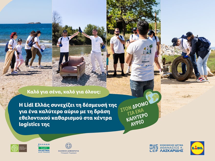 ΗLidl Ελλάς συνεχίζει ακούραστα να επενδύει σε πράξεις με νόημα, δίνοντας ζωή στη δέσμευσή της για ένα καλύτερο αύριο. Στο πλαίσιο της πρωτοβουλίας Plastic Free Greece, που υλοποιείται σε συνεργασία με το Κοινωφελές Ίδρυμα Αθανάσιος Κ. Λασκαρίδης, υπό την αιγίδα του Υπουργείου Τουρισμού και ενταγμένη στην εθνική εκστρατεία «Ελλάδα Χωρίς Πλαστικά Μίας Χρήσης» του Υπουργείου Περιβάλλοντος και Ενέργειας, η Lidl Ελλάς γράφει το δικό της κεφάλαιο αλλαγής, με επίκεντρο τη βιωσιμότητα και τη συλλογική προσφορά.